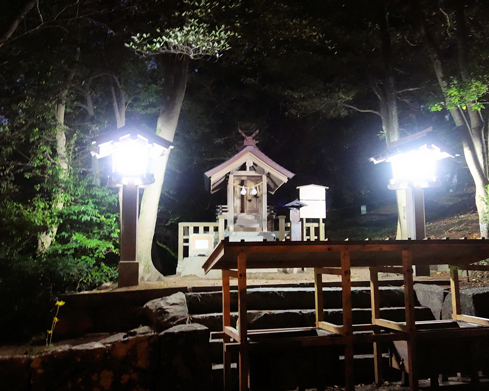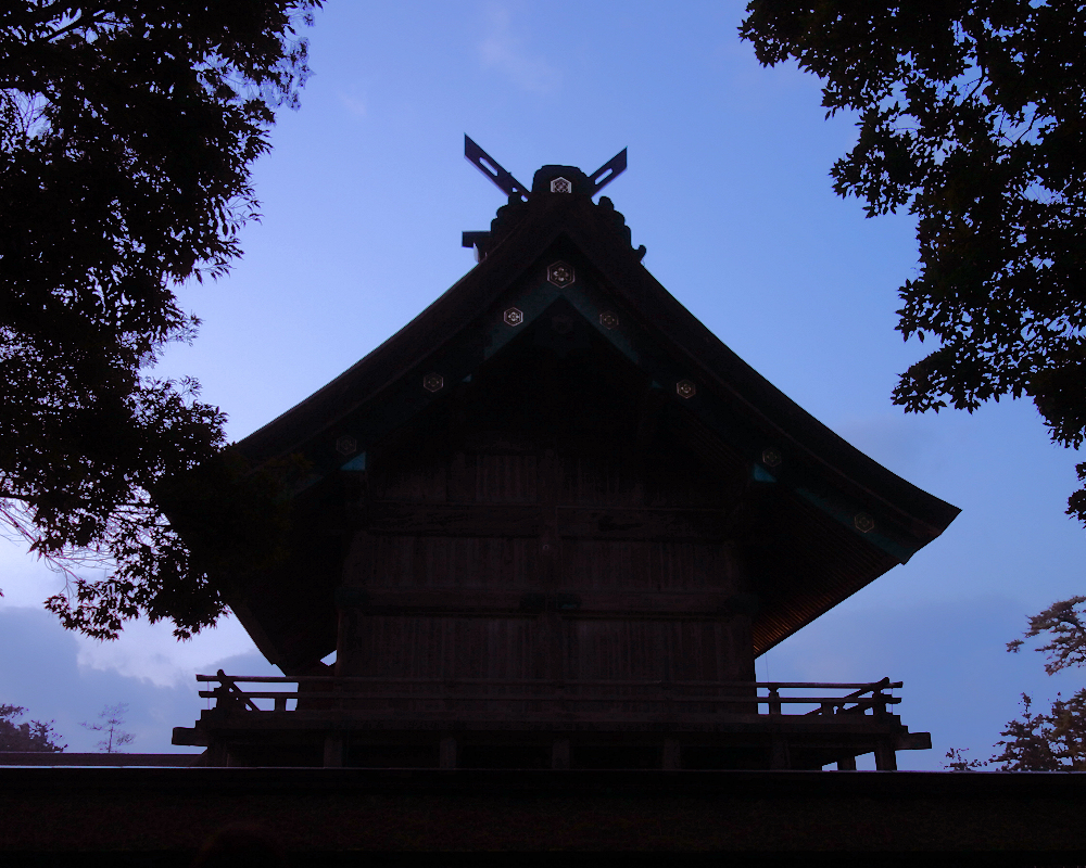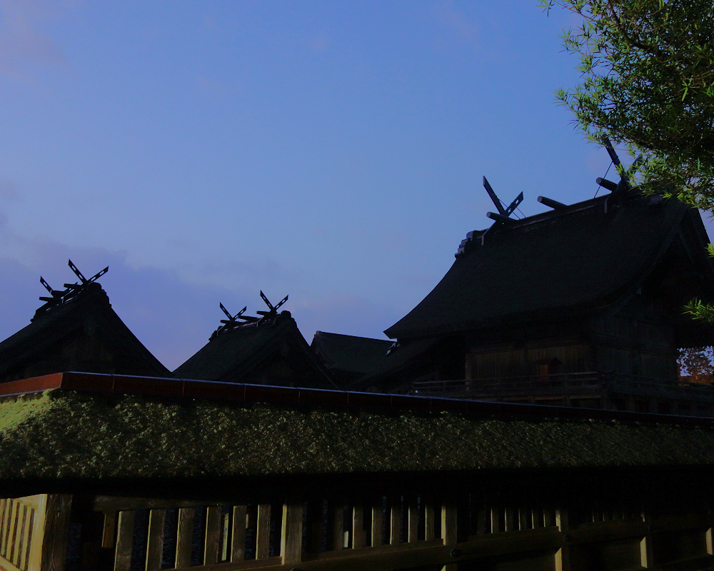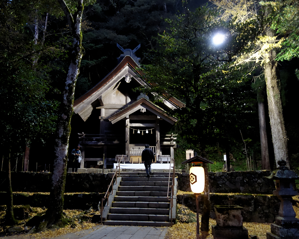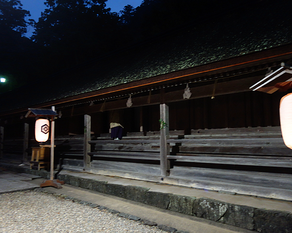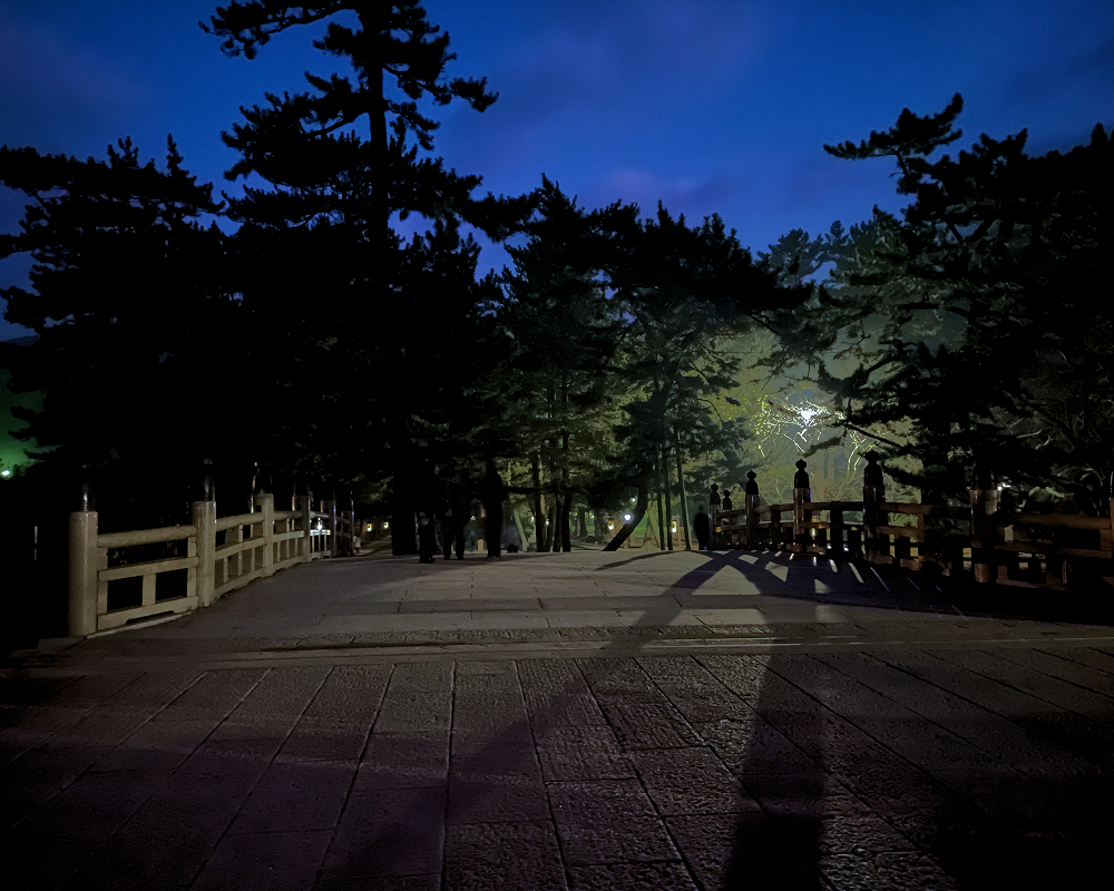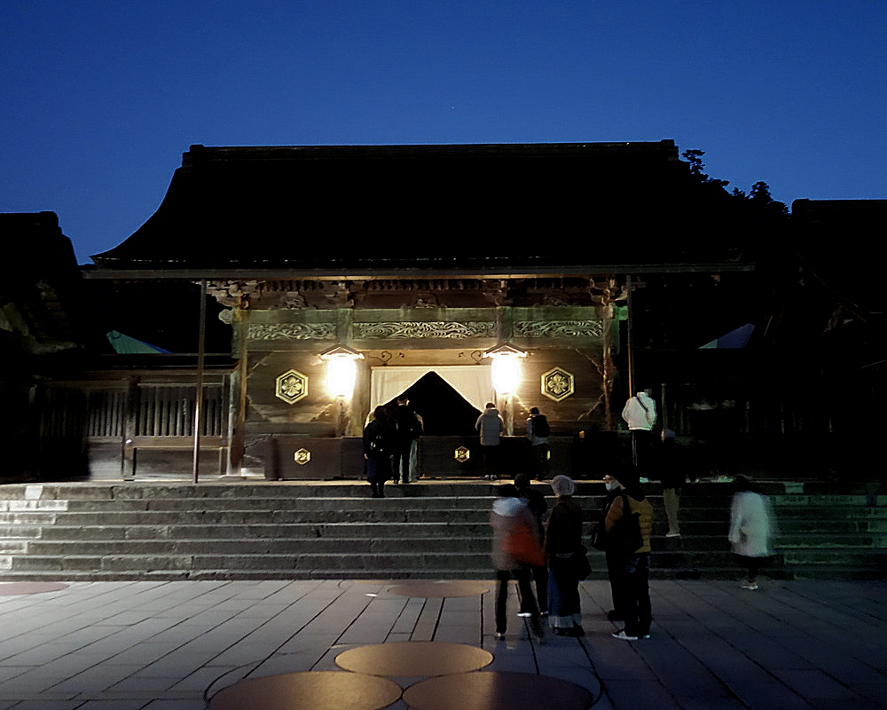 カメラの機能で写真では少し明るさが残っていますが、実際は真っ暗な出雲大社の境内。