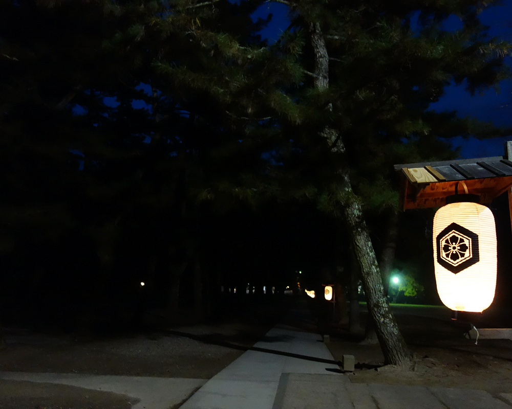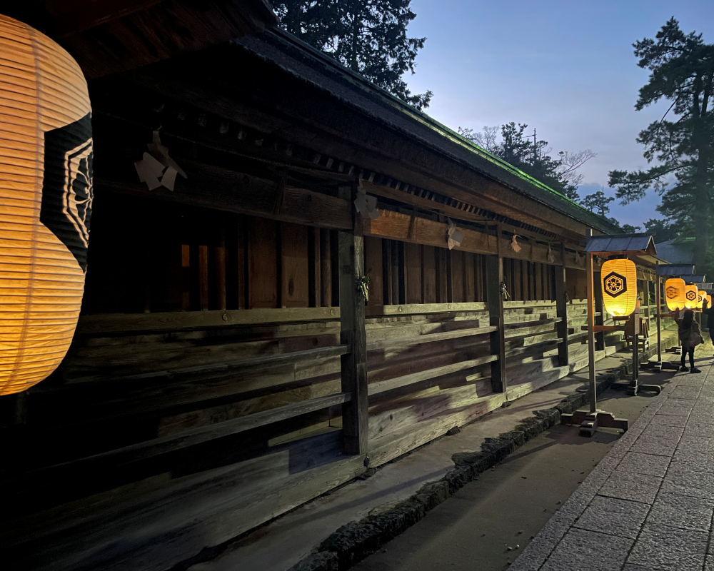 辺りは真っ暗ですが、参道は気持ち良いくらい、スカーっと(清々しく)した空気に満ちています✨その中で、提灯の灯りが幻想的に浮かび上がり、「何と贅沢な空間なんだろう」としみじみと感じました。