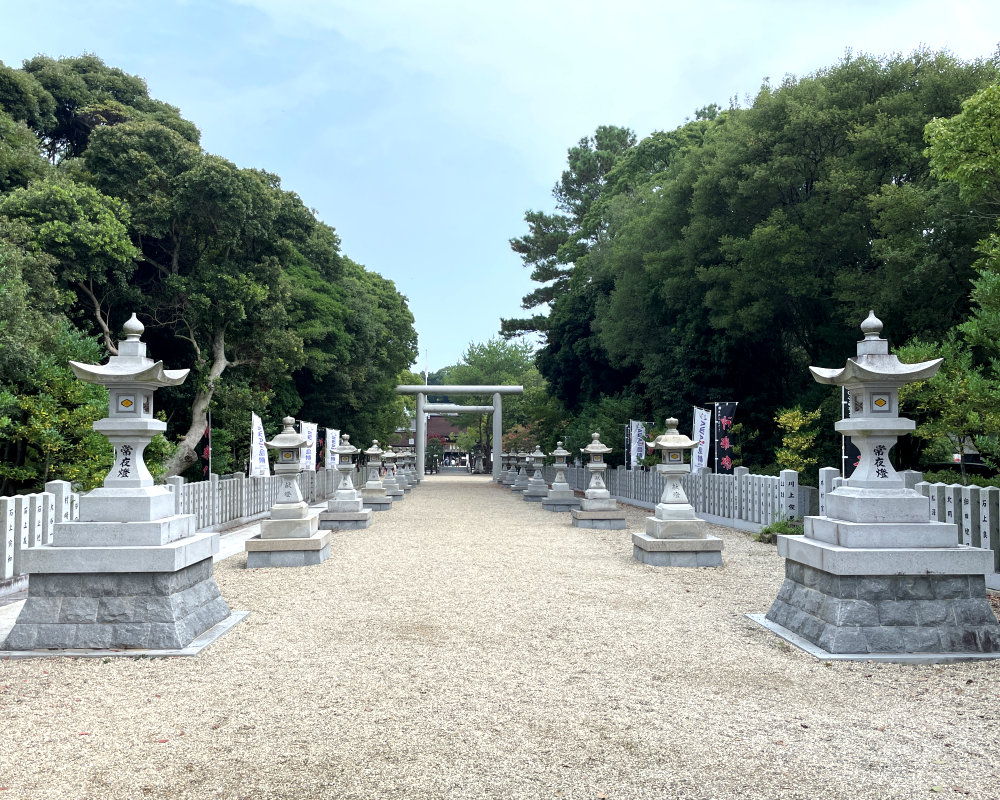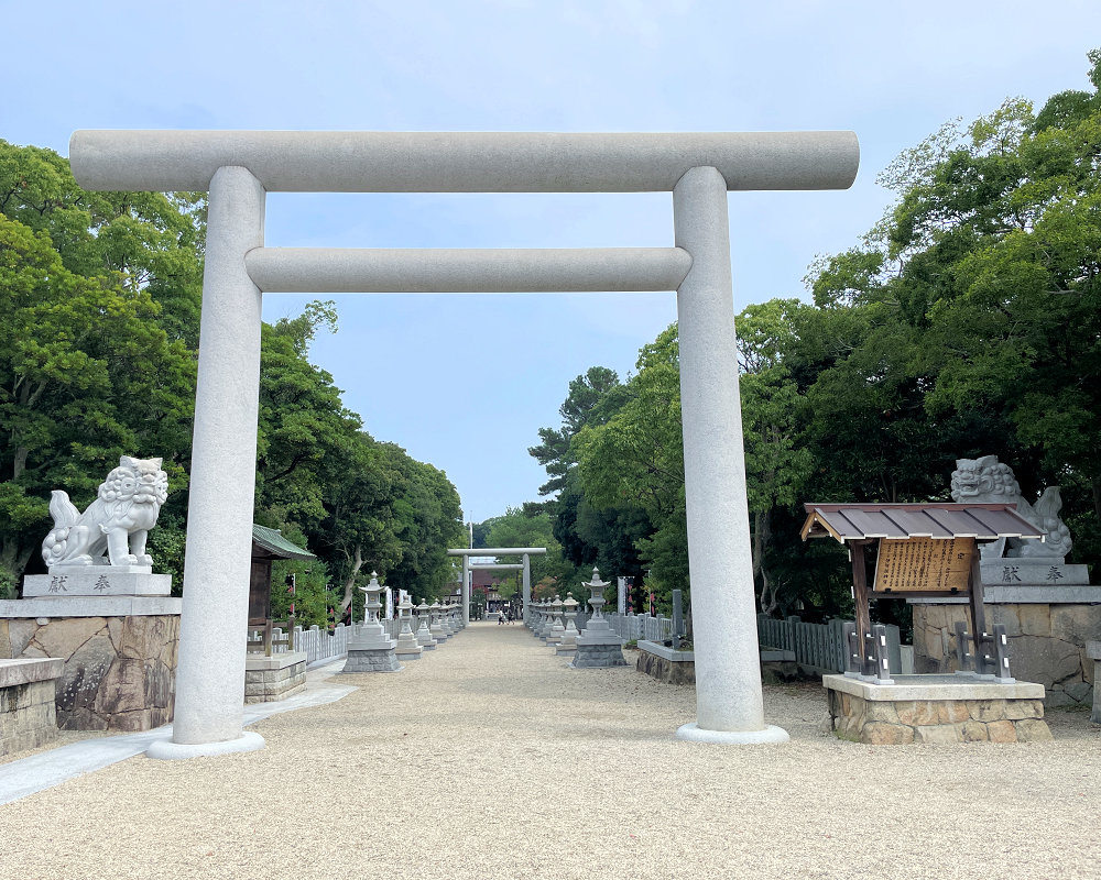 高さ約8メートルもある花崗岩の大鳥居は、日本最大級の規模。震災で一度倒れましたが再建され、今も参拝者を迎えています。