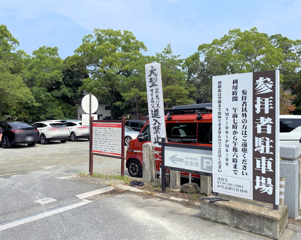 大鳥居の東側にある最も神社から近い駐車場です。参拝に便利ですが週末など大変込み合います。