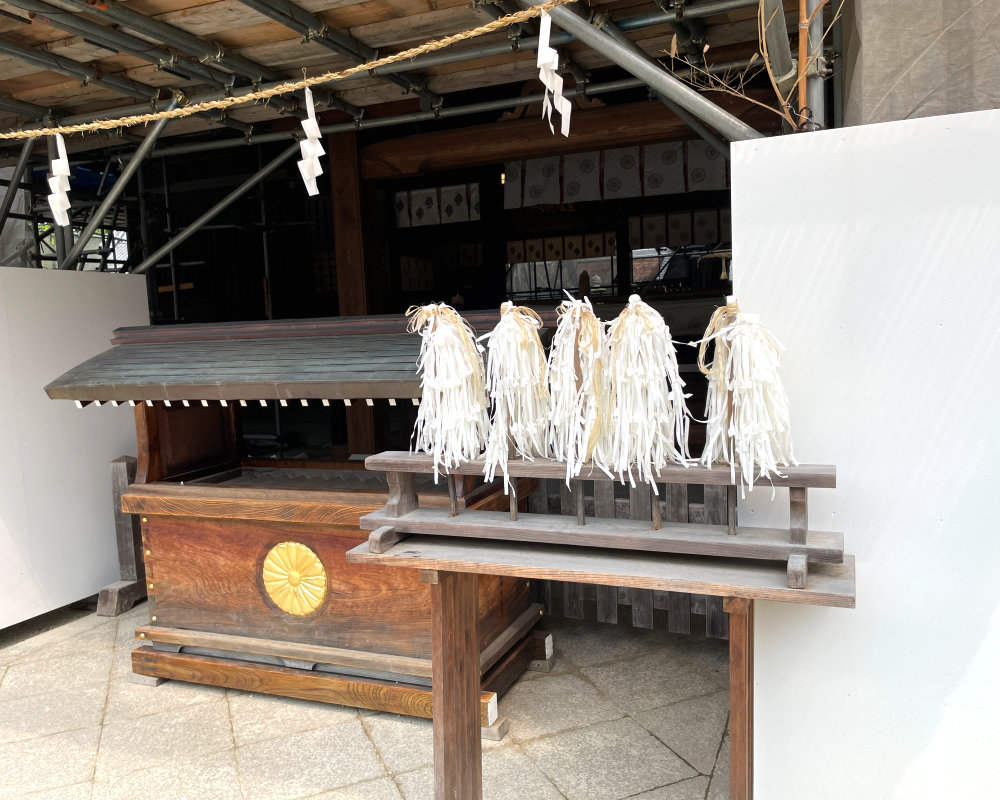 神門をくぐると、すぐ左右に東と西の授与所がありました。