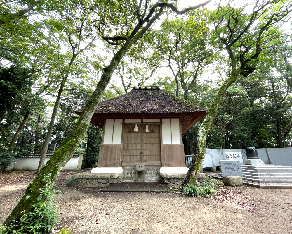 左右神社は本殿の右側にあり、伊勢神宮と同じ方角に位置しています。参拝の途中で立ち寄り、目の健康を願う方が多い小さなお社です。