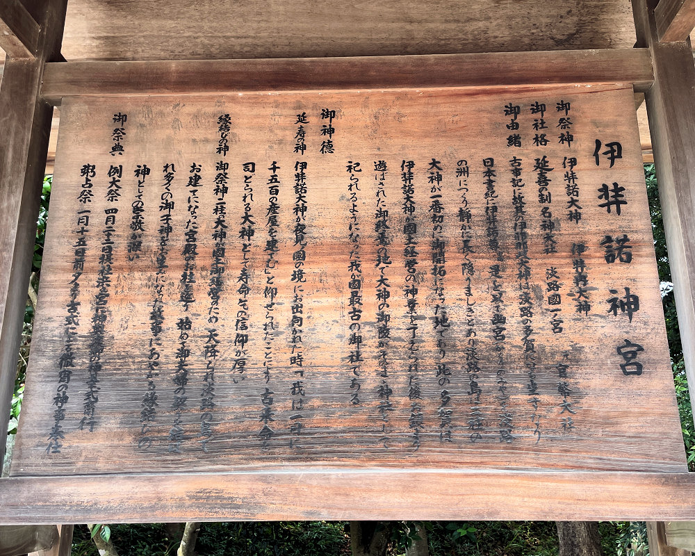 日本最古の神社のひとつとされ、国生みの神様「伊弉諾尊・イザナギノミコト」と「伊弉冉尊・イザナミノミコト」をお祀りしています。