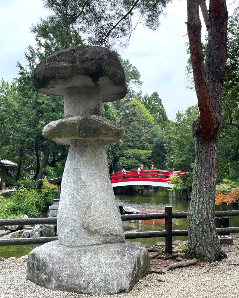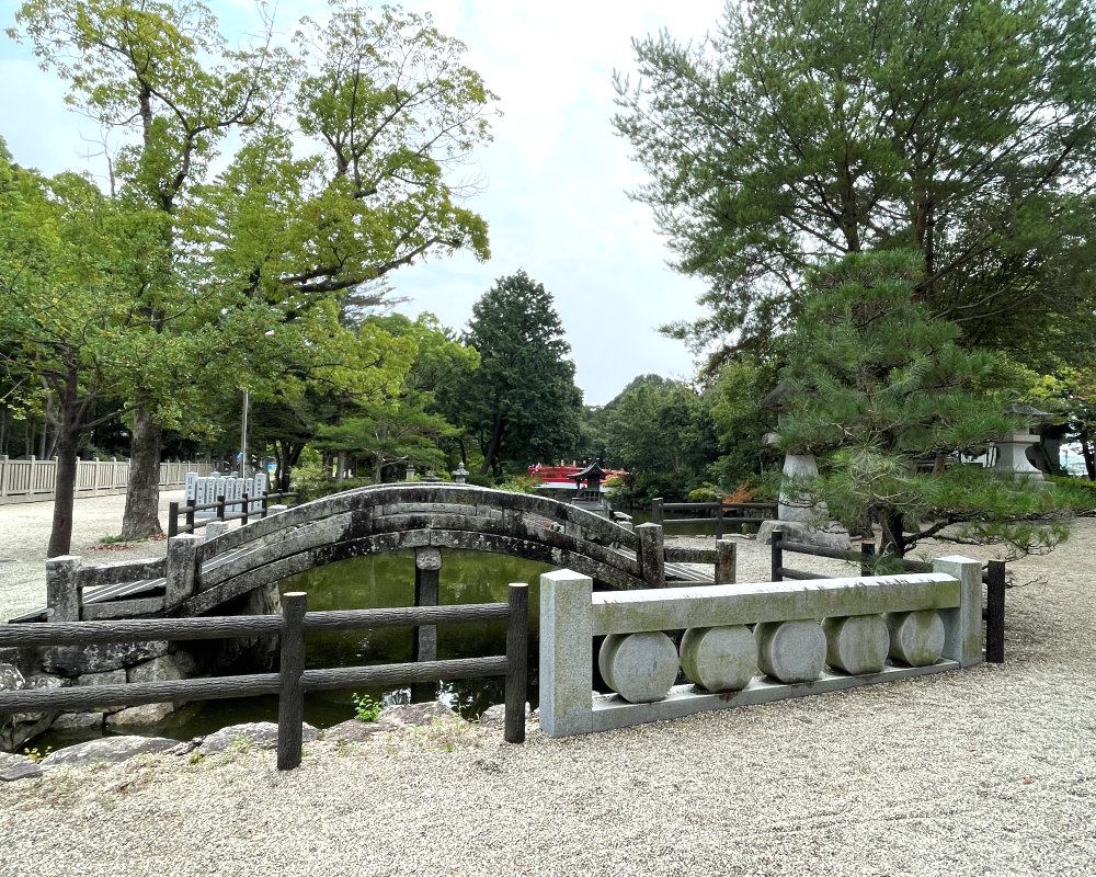 太鼓橋は、池の水面を渡ることで身を清める意味があるといわれています。参拝者が神門へ向かう前に立ち止まり、気持ちを落ち着ける場所として大切にされてきました。
