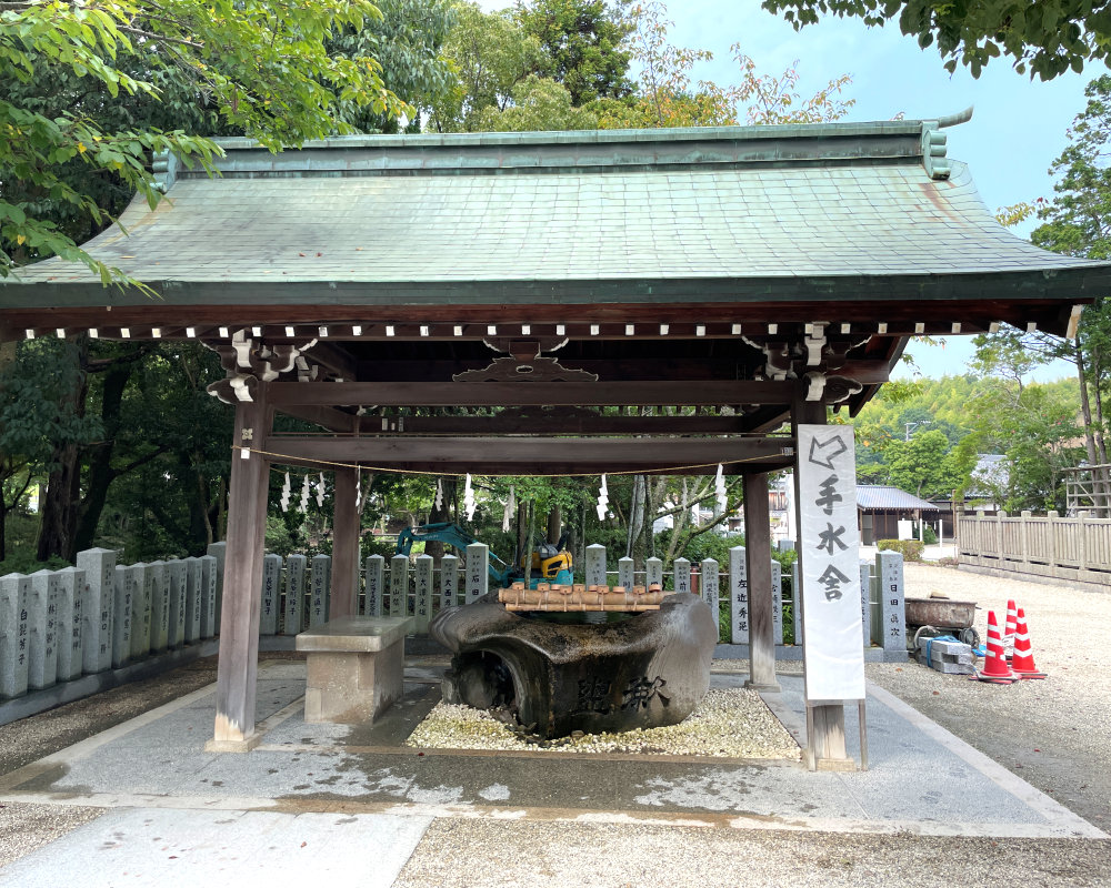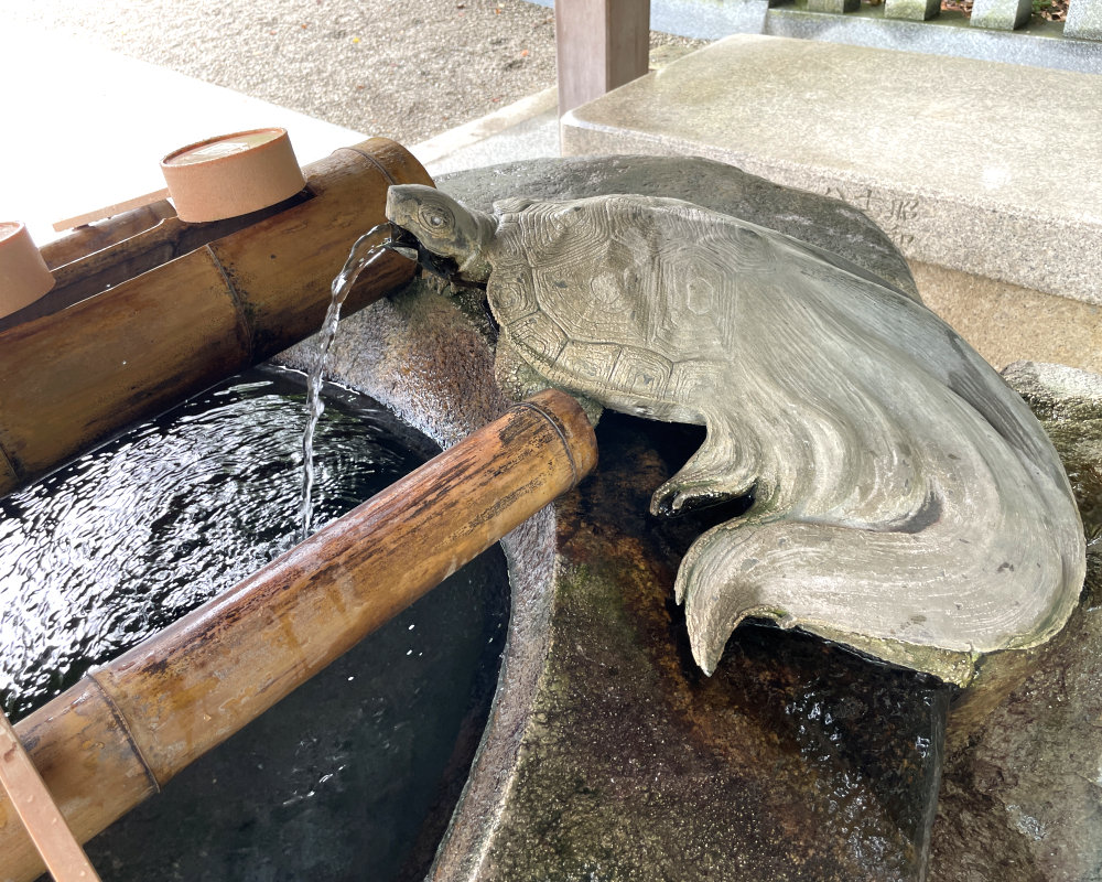 参拝前に手を清める手水舎の水口は亀の形。亀は長寿の象徴とされ、健康への祈りも込められています。