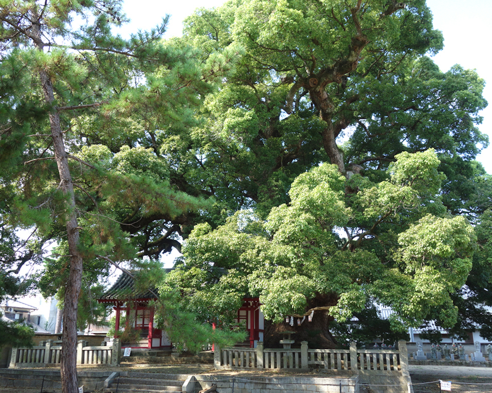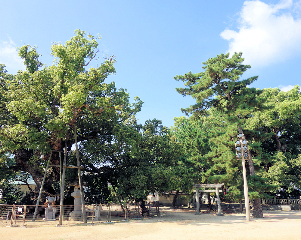 南大門の北側と五社明神社のそばには、樹齢千年以上と伝わる2本の大楠があります。どちらも樹齢は千年以上と伝えられ、空海さんがが幼いころや善通寺創建の時代を偲ばせる存在です。