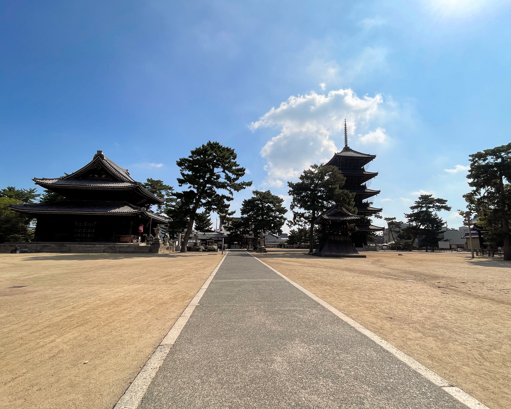 広い境内には、歴史ある伽藍が立ち並ぶ東院と、空海さん誕生の地に建てられた西院の二つのエリアに分かれていて、それぞれに見どころや魅力があふれています。