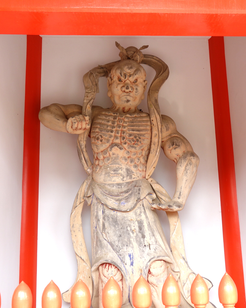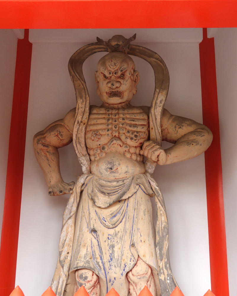 両脇には金剛力士像が睨みをきかせ、門前には大きな草履が奉納されています。