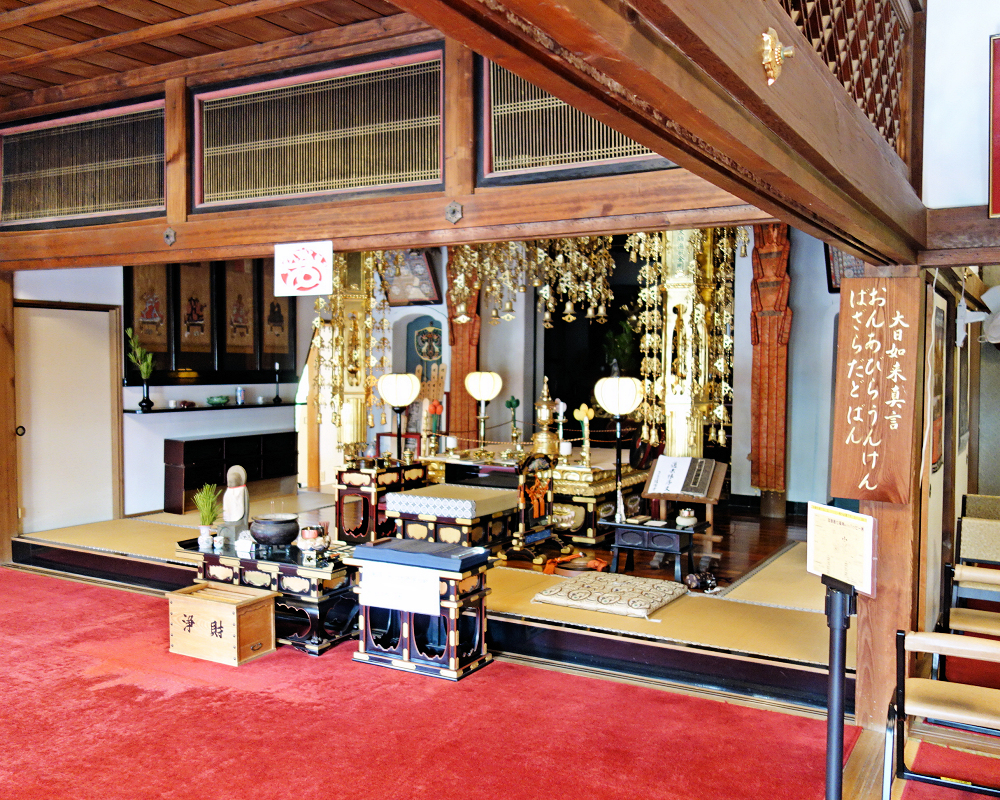 本堂、正面には御本尊は大日如来がお祀りされています。