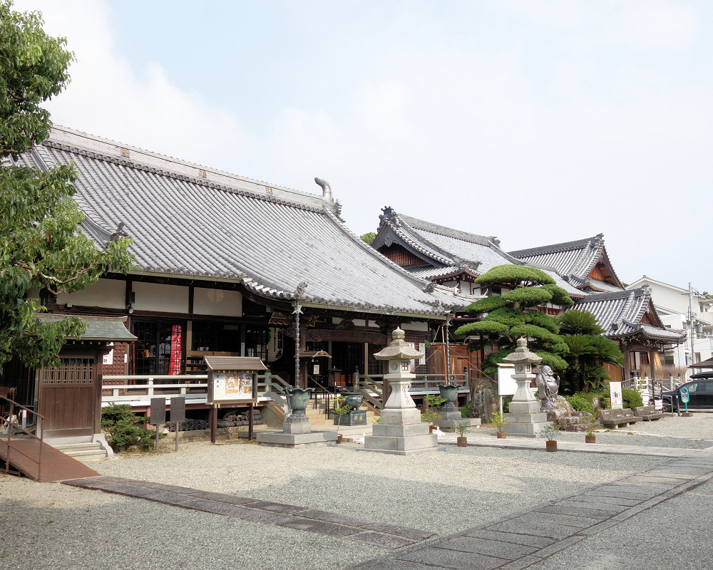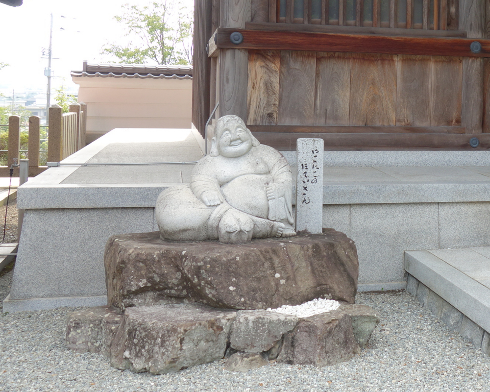 この布袋尊像は、本堂の屋根を改修した際の記念として、淡路島特産のいぶし瓦で造られたものだそうです。穏やかな表情がどこかあたたかく、訪れる人の心をやさしく和ませてくれます。