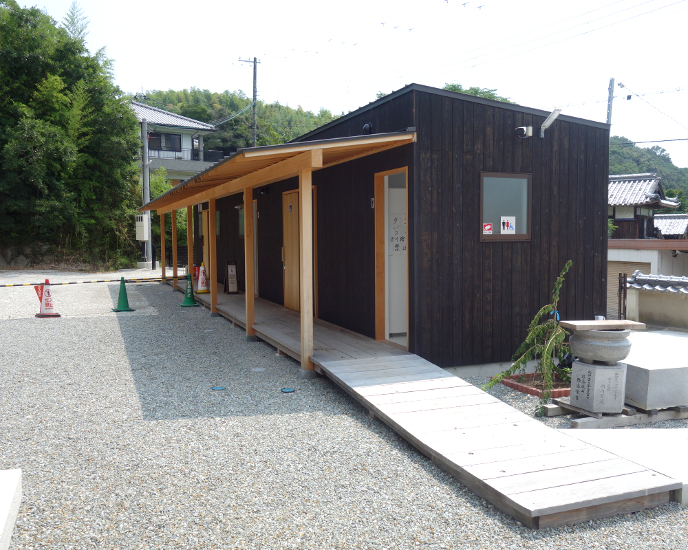長寿橋の前に、真新しい存在感のあるトイレがありました。