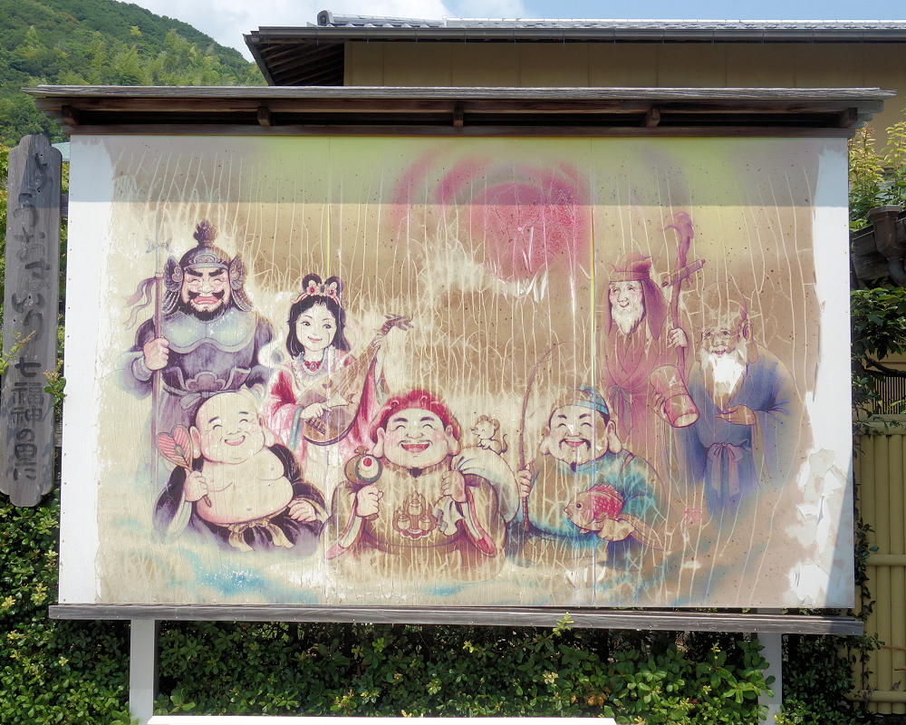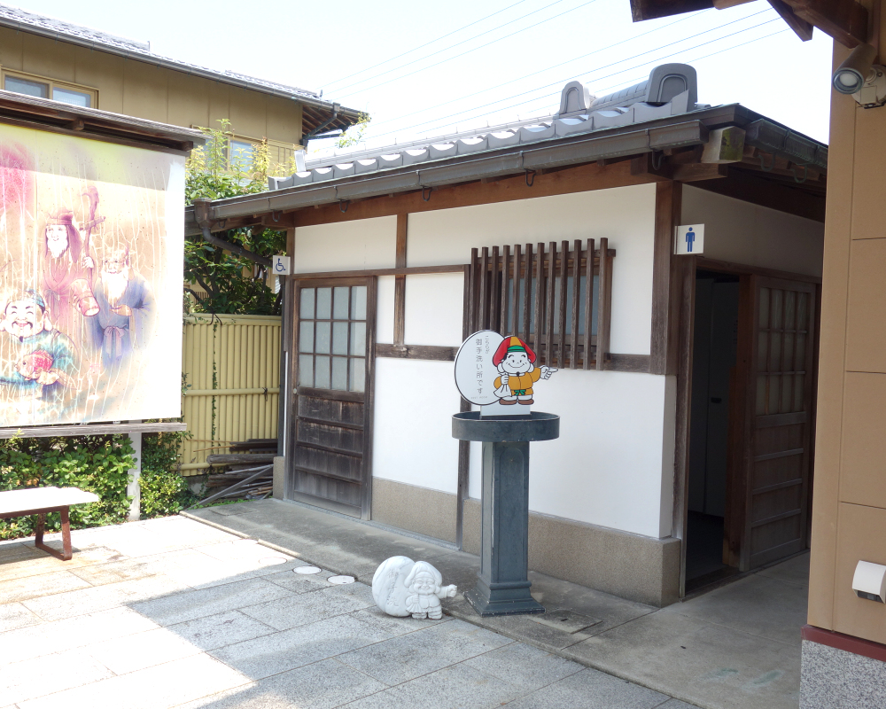 トイレの前には、七福神の神様たちのイラストが描かれた可愛い看板がありました。どの神様も穏やかな笑顔で描かれていて、見ているだけで心が和みます☺️