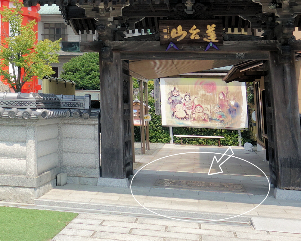 山門の足元に、蓮の花びら模様が石畳に刻まれ、この蓮の上を一歩ずつ踏みしめながら門をくぐることで、心の穢れを払い、福徳の縁を結ぶと伝えられています。