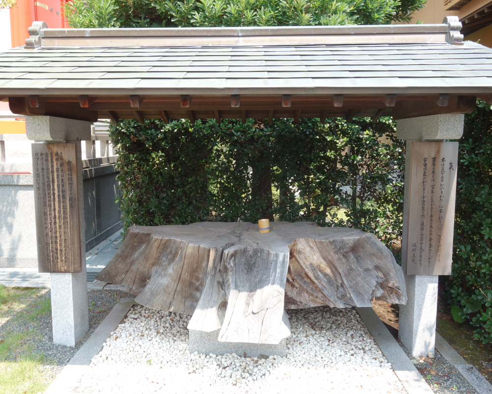 境内には「寶塔心柱育ての根元」と呼ばれる大きな切り株があります。