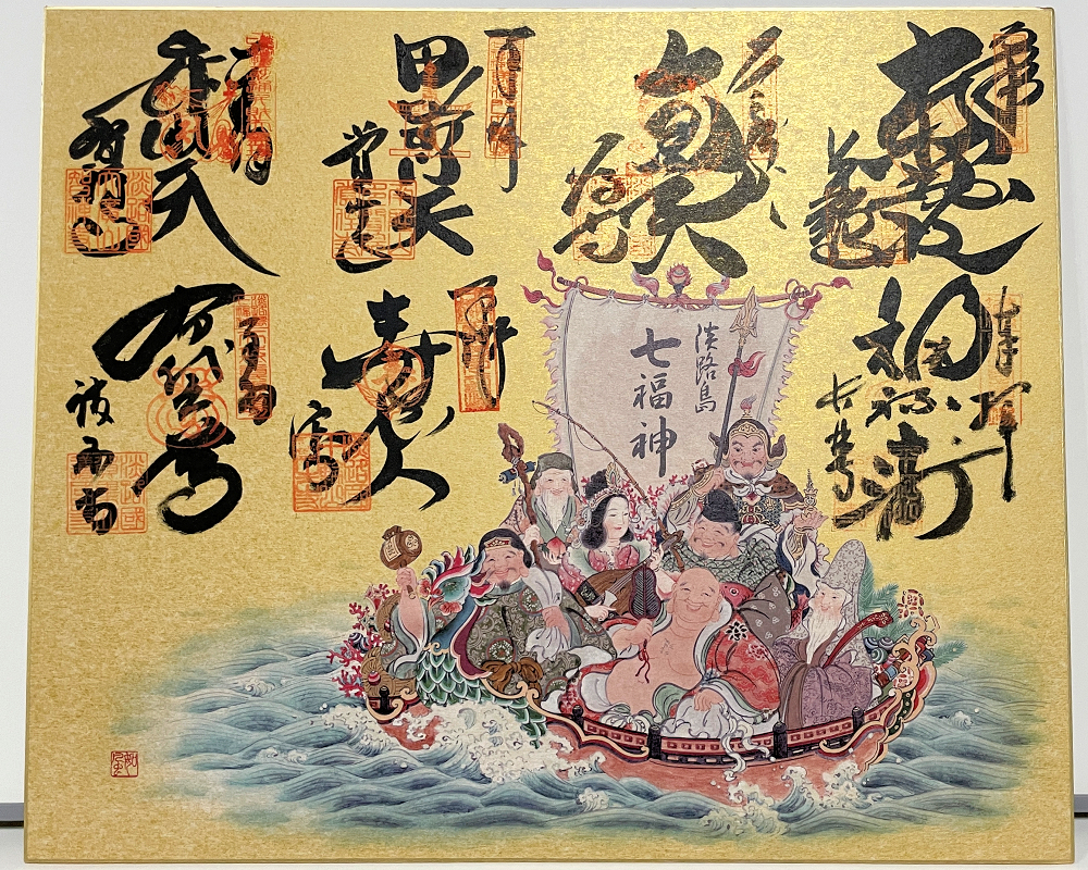 七福神で集めた御朱印とハッピー券での粗品や福笹
