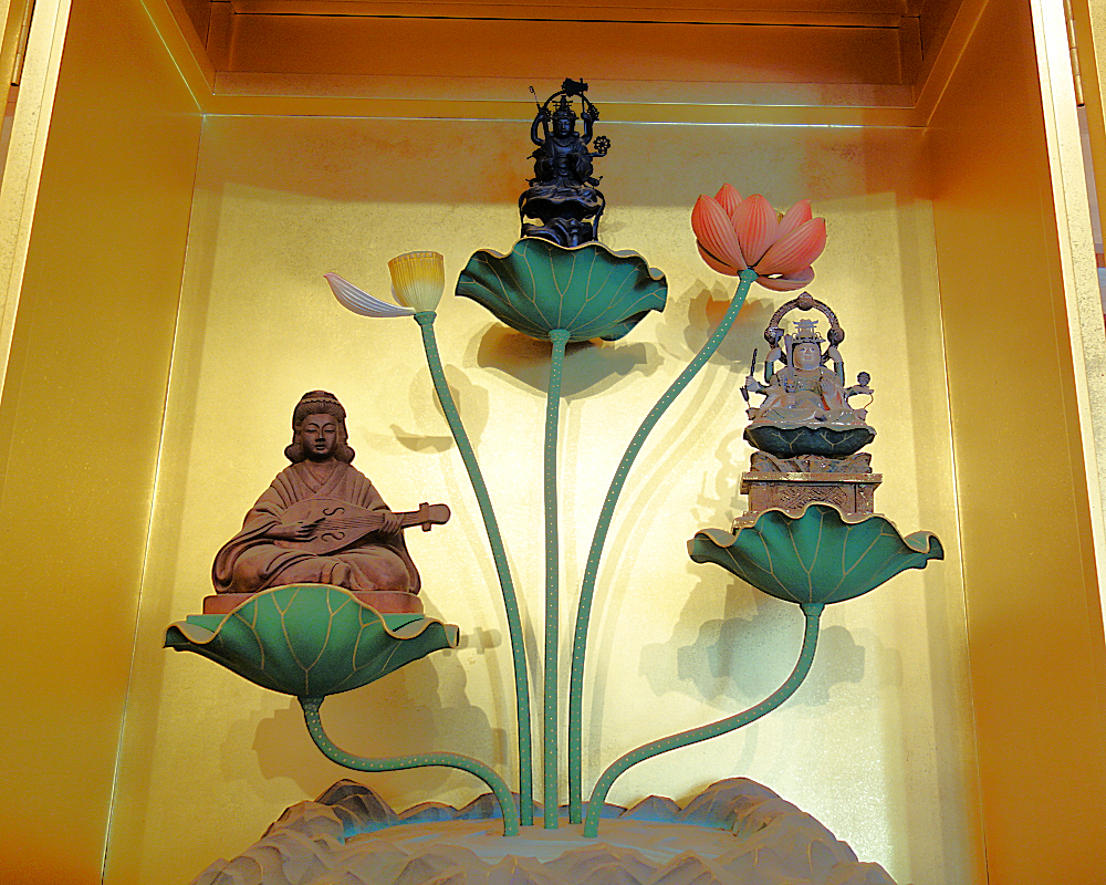 正面「八臂宇賀神弁財天」の後方辺り、大きな厨子の中に3体の弁財天像が収められています。
