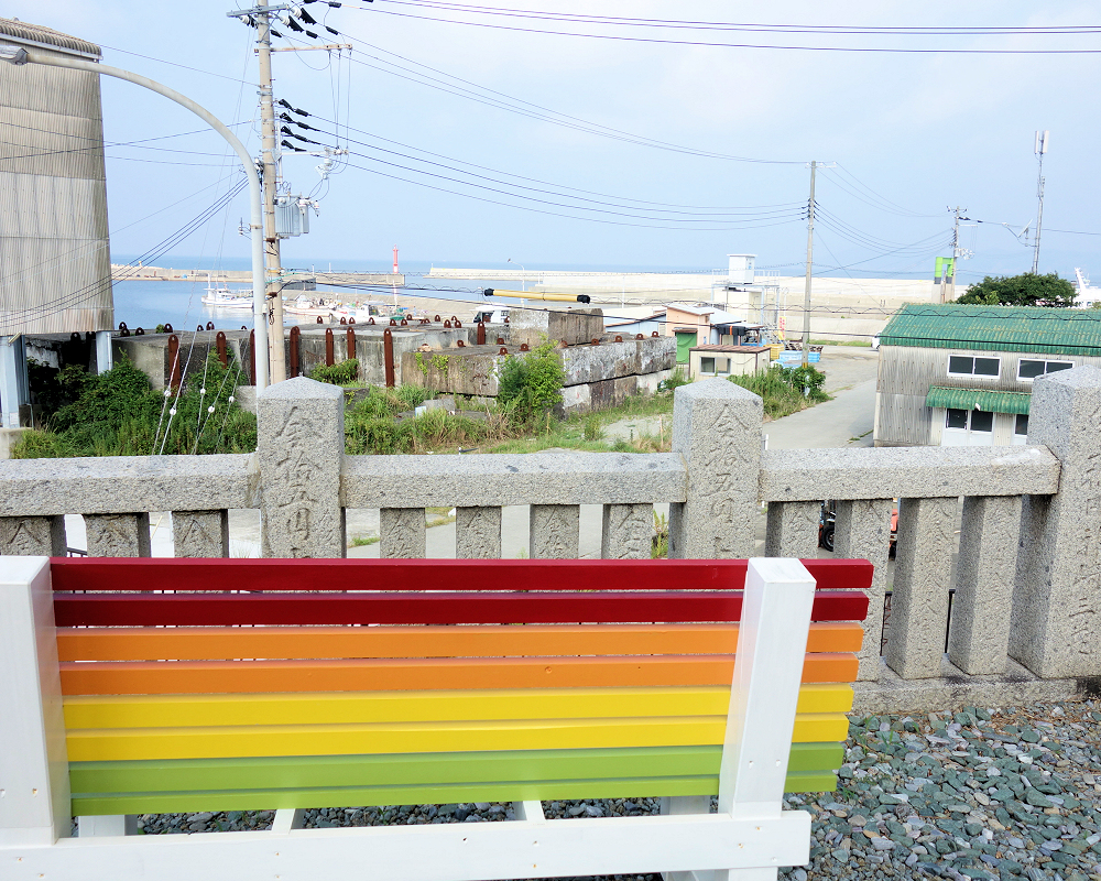 カラフルなベンチからは、港が見渡せます✨