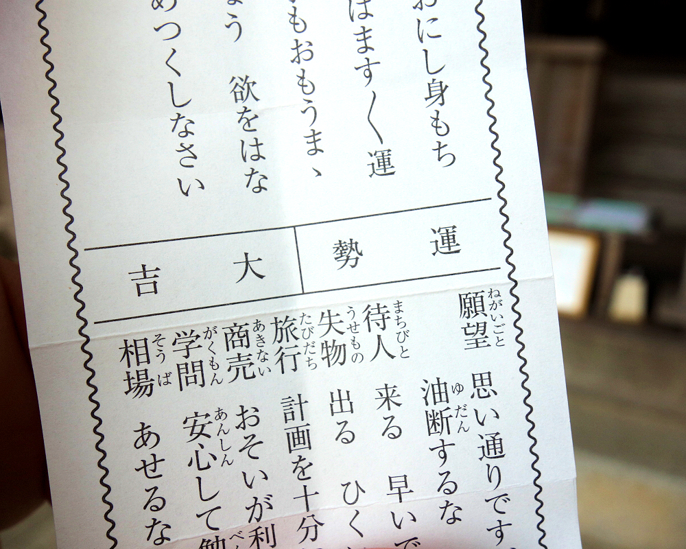 普段はあまりおみくじを引かない私ですが、今回はなんとなく気になって引いてみることにしました。