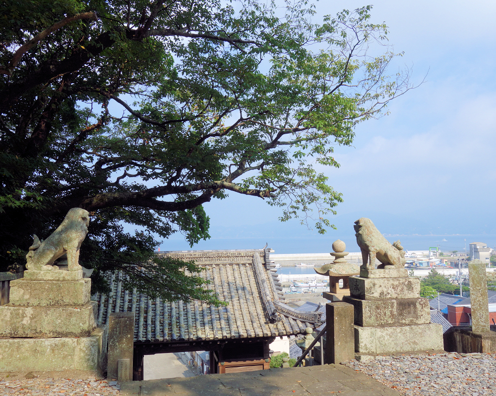 境内には、事代主命をお祀りする恵比須神社や、豊玉姫命を祀る海積神社もあり、海とともに暮らす島の信仰が息づいています。