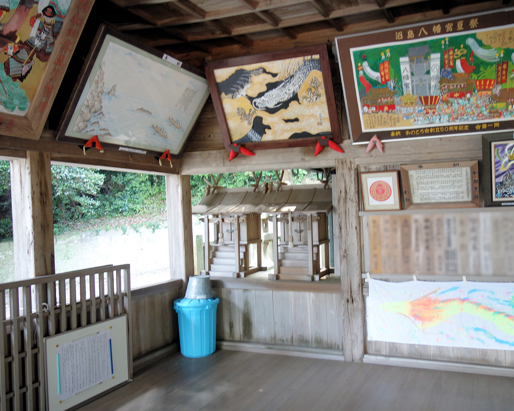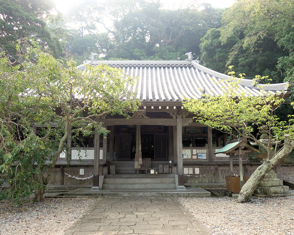 社殿は静かな森に包まれ、八幡の神と海の神々が祀られています。
