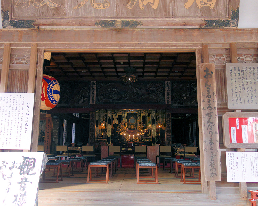 本堂には、ご本尊の薬師如来を中心に、左右に日光菩薩と月光菩薩、そして十二の方角を守護する十二神将が並び、静かに祈りの場を見守っています。