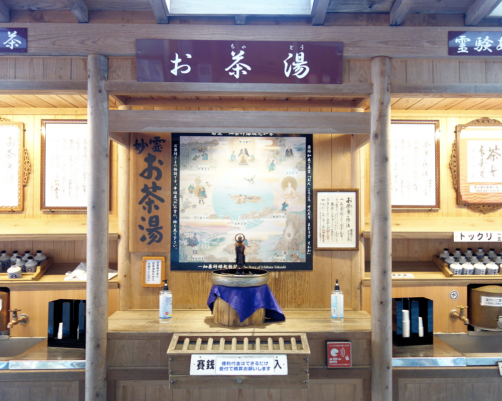 そのお下がりを「お茶湯(おちゃとう)」として参拝者に授与しています。希望者は徳利(冥加料500円)に入れて持ち帰ることもできます。
