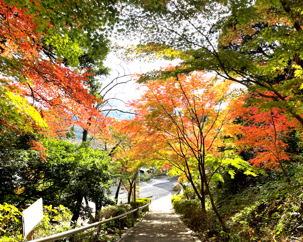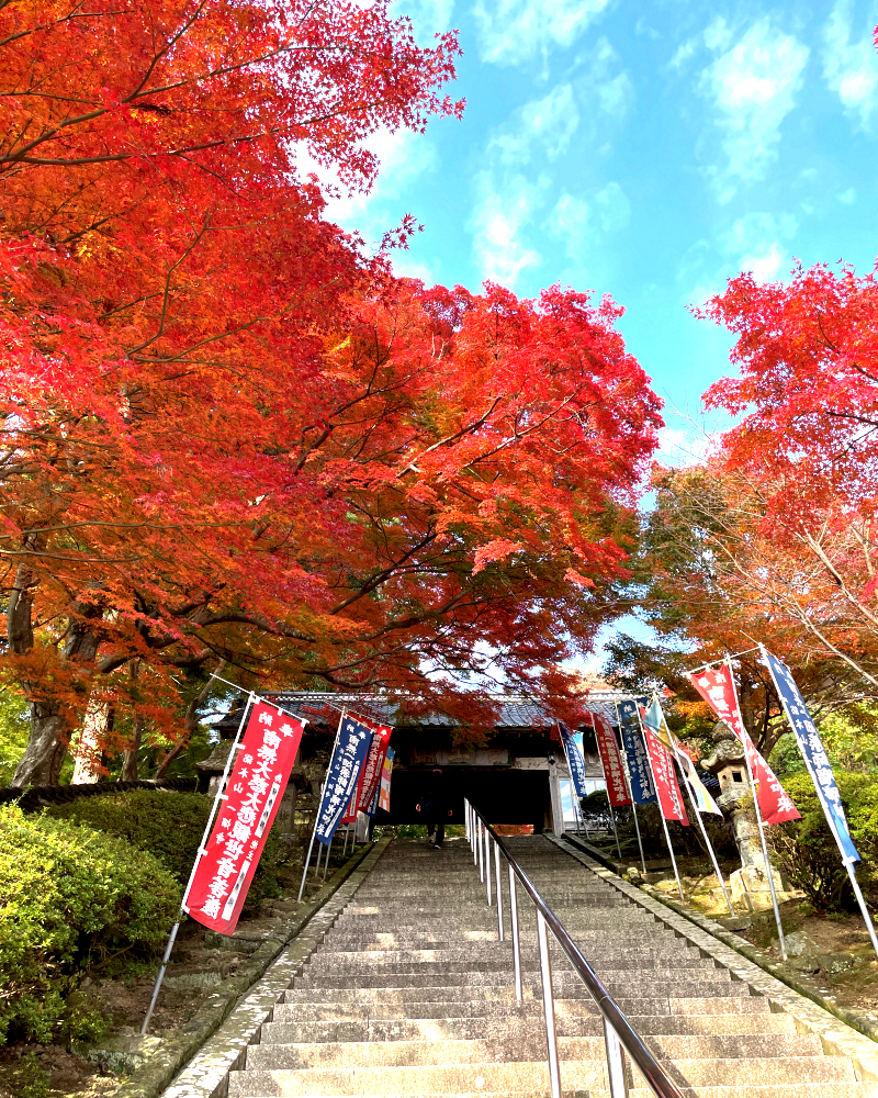 そして何より、秋の一畑薬師の紅葉は本当に見事!山全体が赤や黄色に染まり、石段や参道もまるで絵のような美しさです🍁