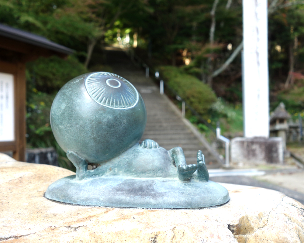 妖怪漫画家として知られる水木しげるさんは、幼い頃に家で働いていたお手伝いさんから、神仏や妖怪の話をたくさん聞いて育ちました。そのお手伝いさんは、一畑薬師を深く信仰する人で、少年だった水木さんをお参りに連れて行っていたそうです。このご縁から、境内には「目玉おやじの像」が設置され、今も多くの参拝者が足を止めて微笑んでいます👀