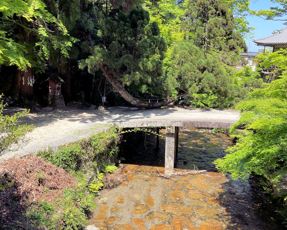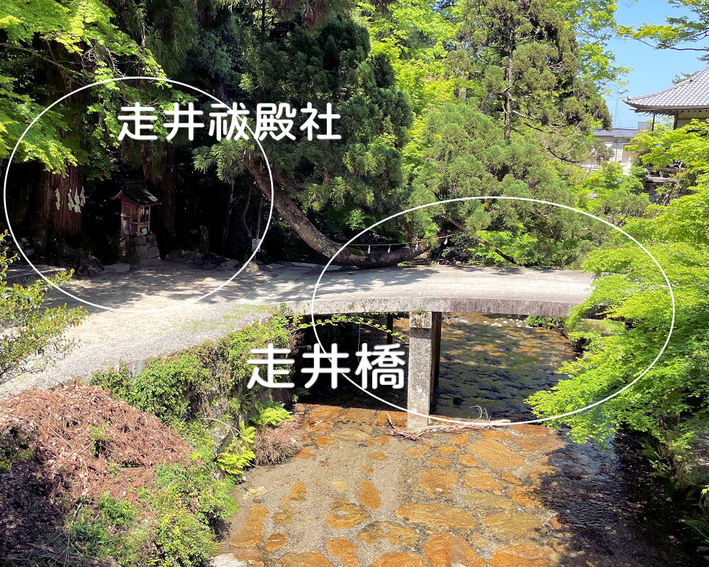 日吉三橋の一つ「走井橋」と渡った先にある「走井祓殿社」