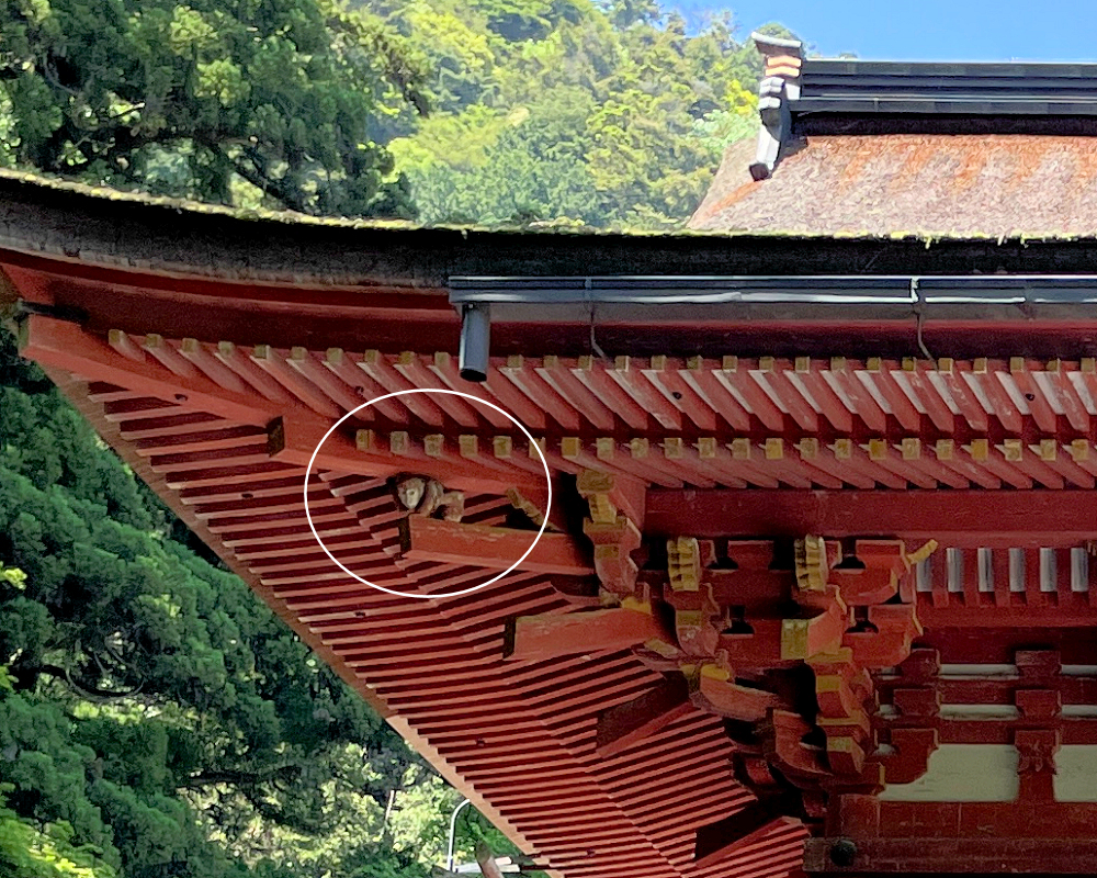 門の四隅には、棟木を支える姿の「神猿(まさる)」が彫られていて、訪れる人を静かに見守っています。