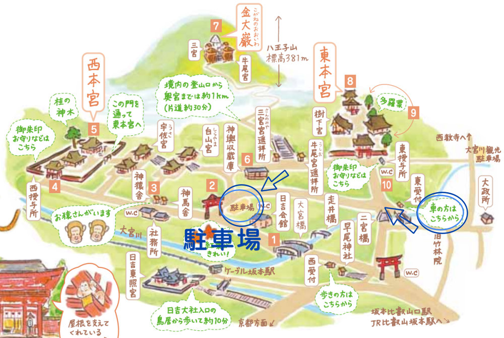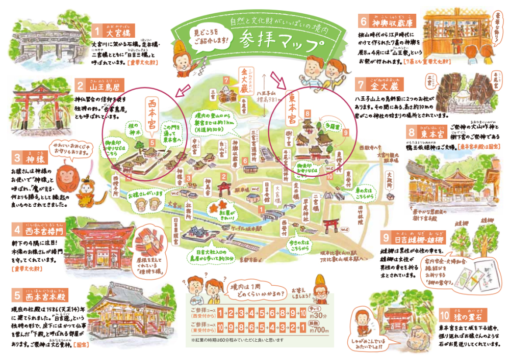 | 社務所 | 9時~16時 (御朱印帳・御朱印・お札・御守り・絵馬・猿みくじなど) ※西本宮・東本宮の各エリアに授与所があります。 |