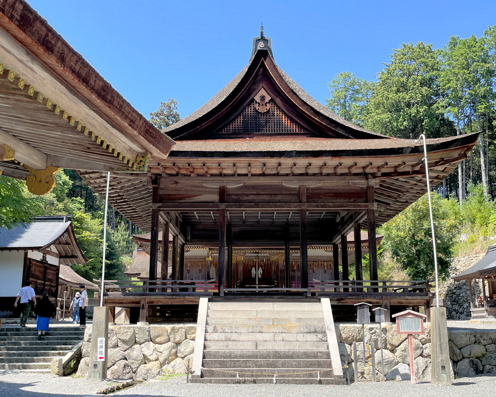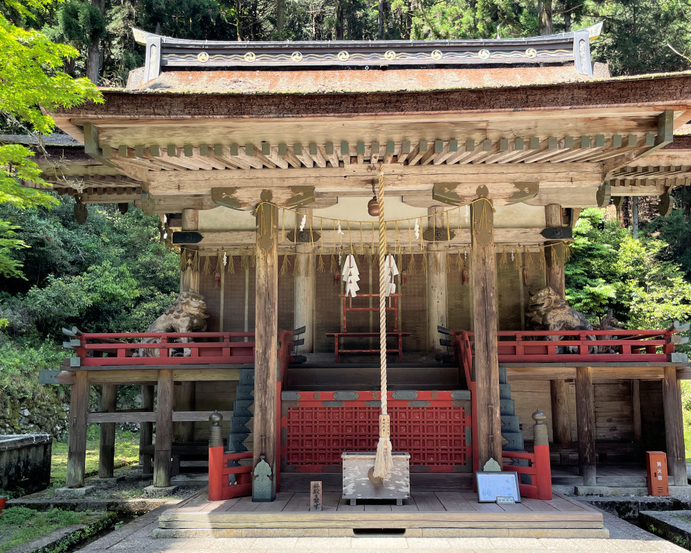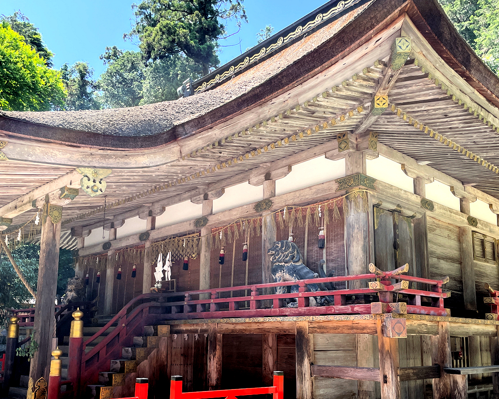 国宝に指定され、当時の工匠の技と美意識が今も息づく貴重な建築です。山の神を祀る本殿として、静かな力強さを感じる佇まいです。