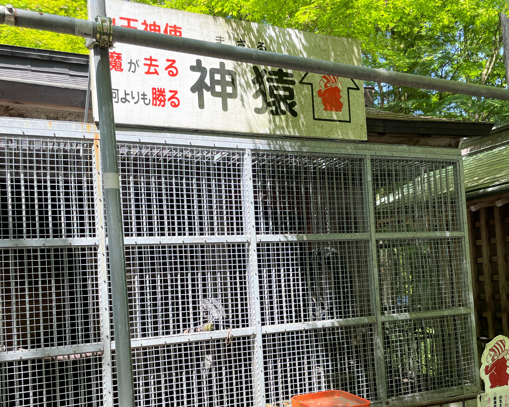 境内では、実際に神の使いとされる猿の姿を見ることができます🐒✨初めて訪れたときは静かに過ごしていましたが、二度目の参拝では檻の中を元気に動き回っていました🐵✨