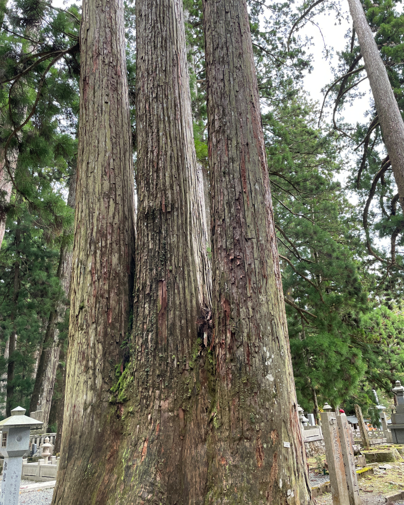 明るくなってから歩いた参道には歴史ある墓所が並び、言葉にできないほど清らかな空気が満ちていました。そして、識子さんの本で紹介されていた三股のご神木との出会い。人との関係を整え、心を穏やかにしてくれるというエッセンスを、そっといただくことができました✨