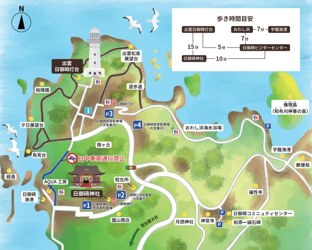 | トイレ | 境内にトイレはありません。 バス停の公衆トイレ、灯台遊歩道途中のトイレをご利用下さい。 |