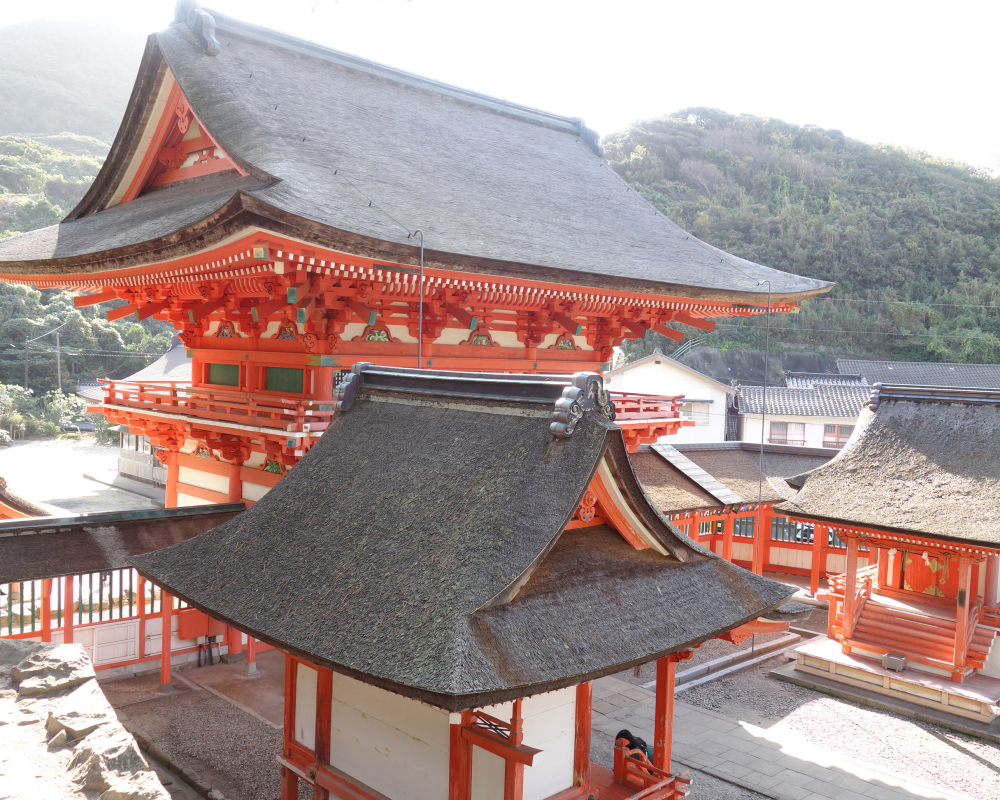 鮮やかな朱の社殿が海辺の地形に寄り添うように建ち、上下二社が並ぶ独特の構成は訪れるたびに新しい発見があります。権現造の社殿や、松の緑に映える楼門の姿は時代を越えて受け継がれてきた美しさがあり、歩くほどにこの地が大切に守られてきたことを感じられる場所です。静かに佇む境内を後にすると、今年もまた出雲の歴史に触れられたことが心に残りました。