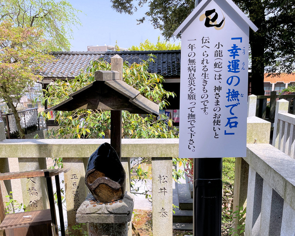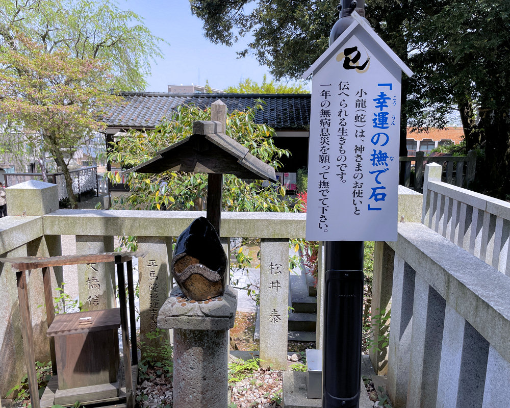 神様の使いと言われる小龍、蛇が彫られた石は幸運と健康と豊穣を運ぶとされています。