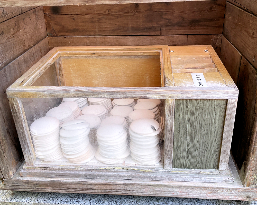 素焼きの杯は、厄割り石の横に置いてあります。