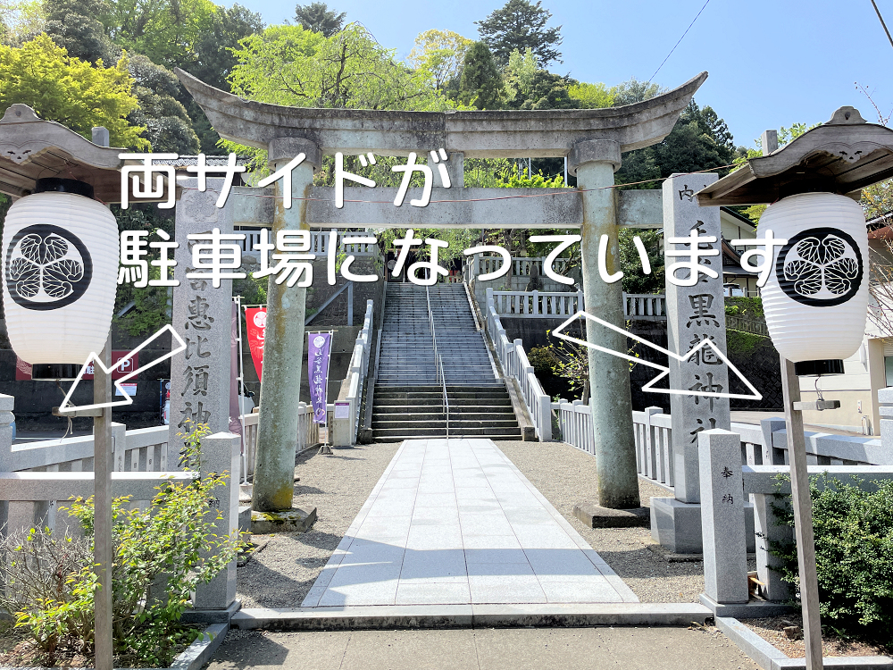 境内入り口の両端に無料の駐車場があります。
