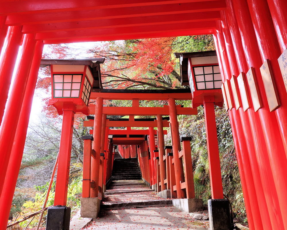 奉納された鳥居は約1000本と言われ、参道全体が朱色に包まれたような雰囲気。