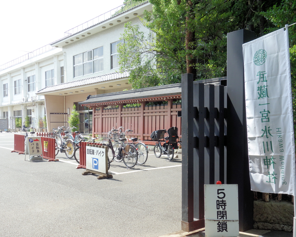 参道入り口付近に駐輪所があります。