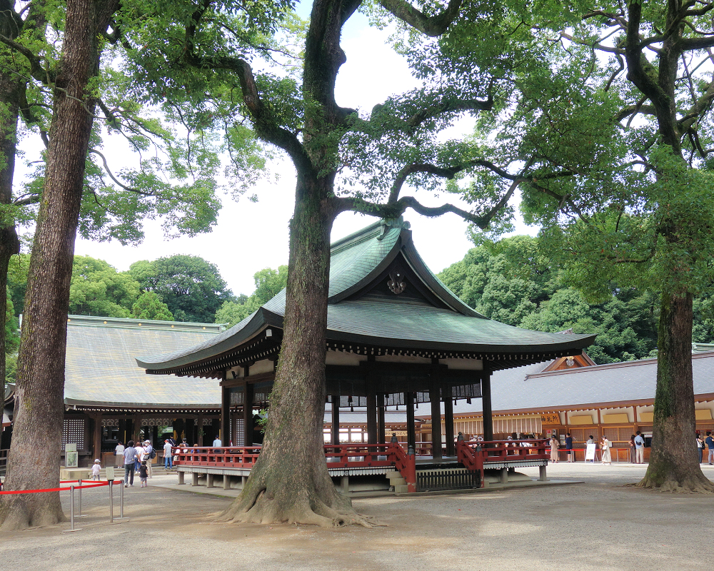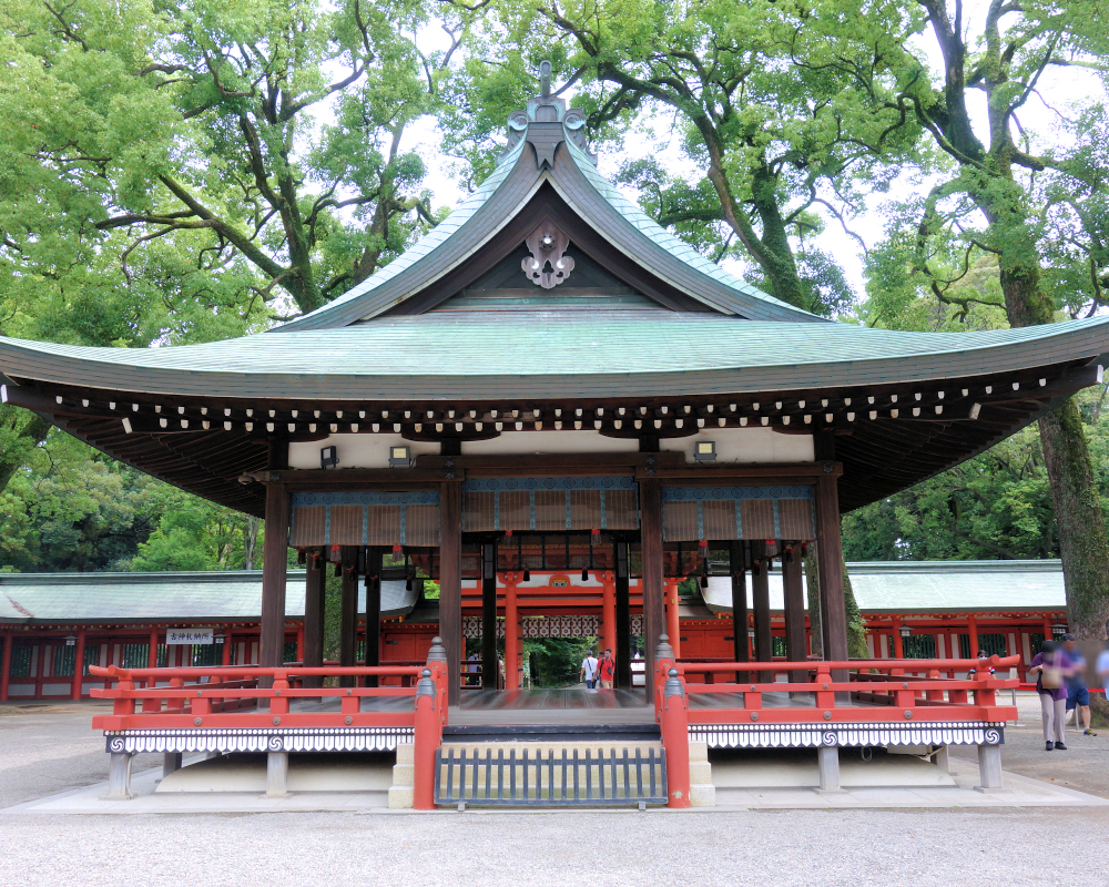 本殿の背後には禁足地である社叢(神社の森)が広がり、都市部にありながら神域としての静謐な環境が守られています。