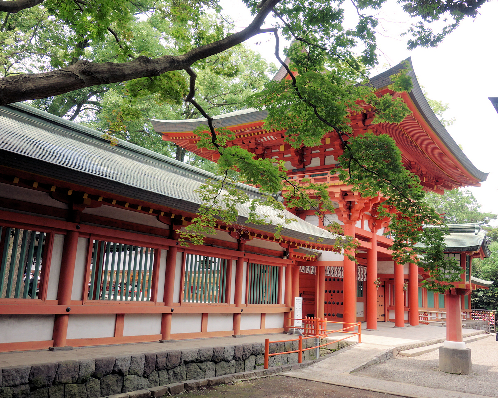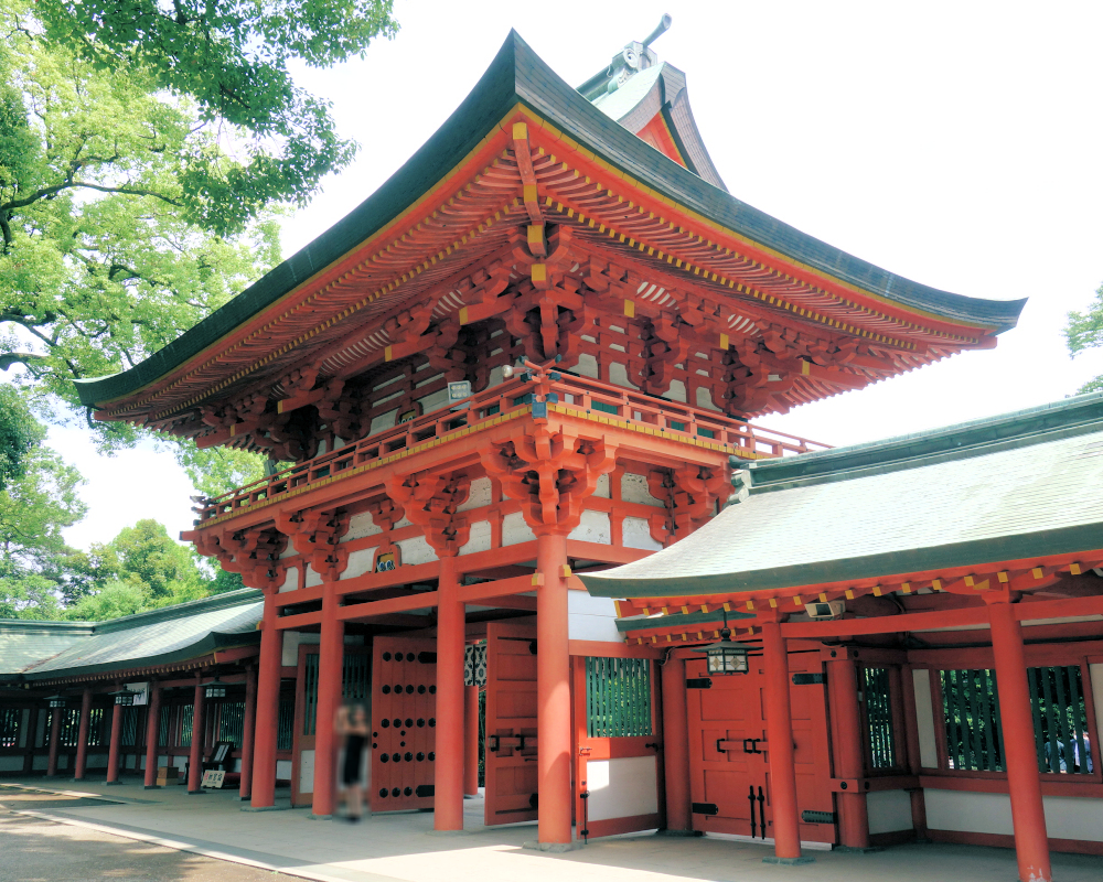 この楼門をくぐると、広々とした神聖な空間(神域)が広がり、本殿や拝殿へと続きます。その存在感から、訪れる人々に神社の歴史的な重要性を強く感じさせます。