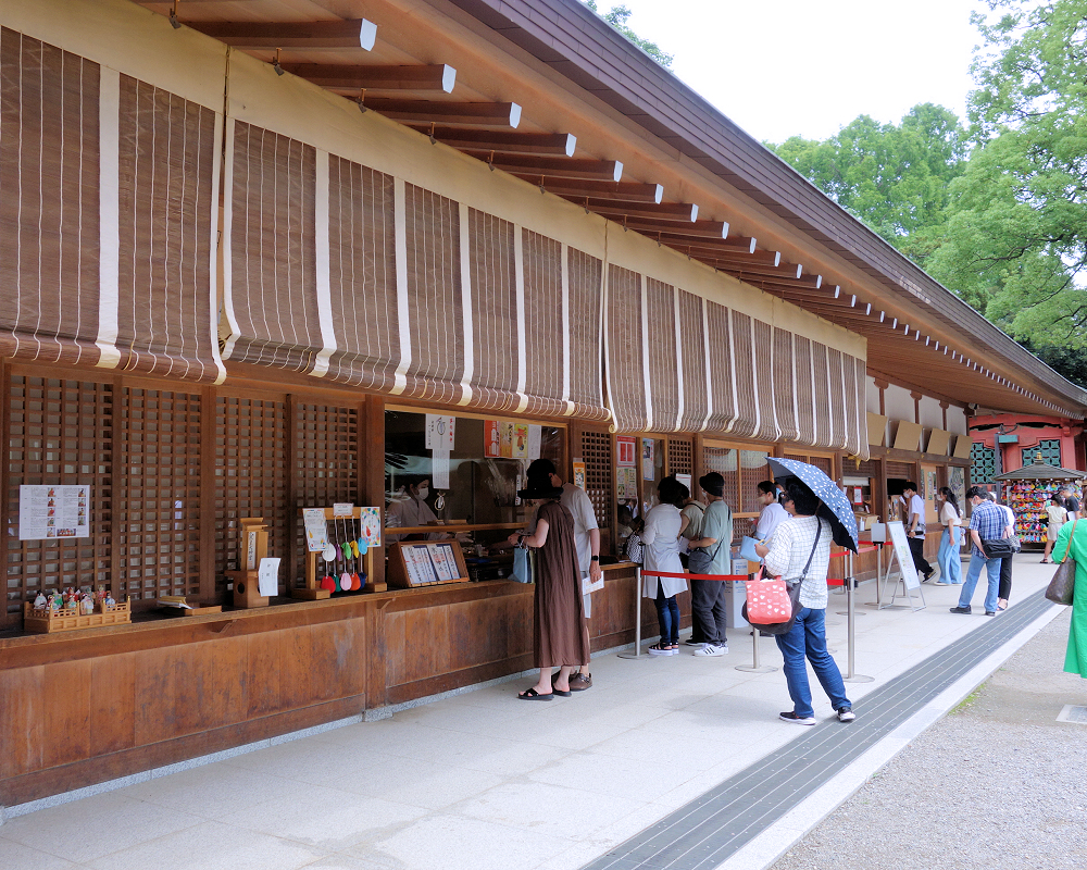 氷川神社の授与所には、目にも鮮やかな授与品が並び、境内を華やかに彩っています。
