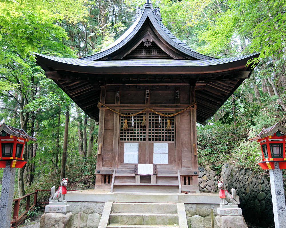 この社殿の最大の特徴は、伏見稲荷大社を正面から見た姿をギュッと縮小したような、独特の造りにあります。本殿・幣殿・拝殿が一つに美しくまとめられた「流造」の様式に、職人の細やかなこだわりを感じることができます。