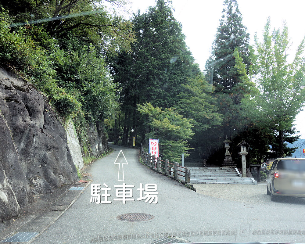 石段の左側の道を進むと、参拝者用の駐車場があります。