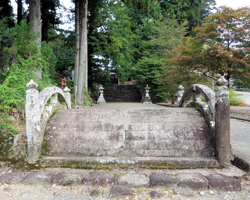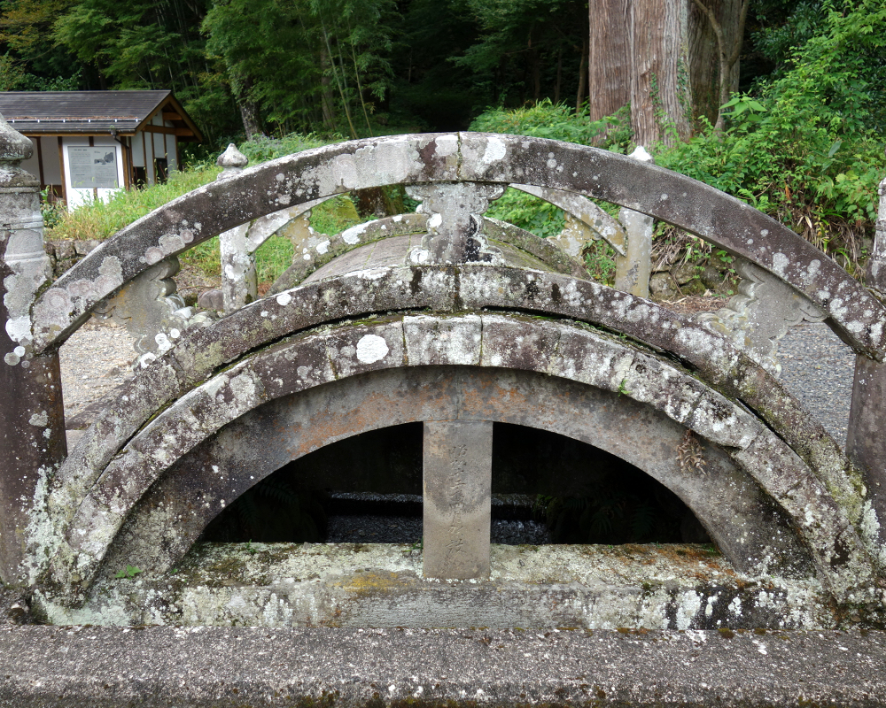 大鳥居の奥には、美しい反りを持った石造りの太鼓橋が架かっています。大鳥居同様、江戸時代のものだそうです。橋の曲線と鳥居の直線が織りなす景観は、この参道でも指折りの見どころです。