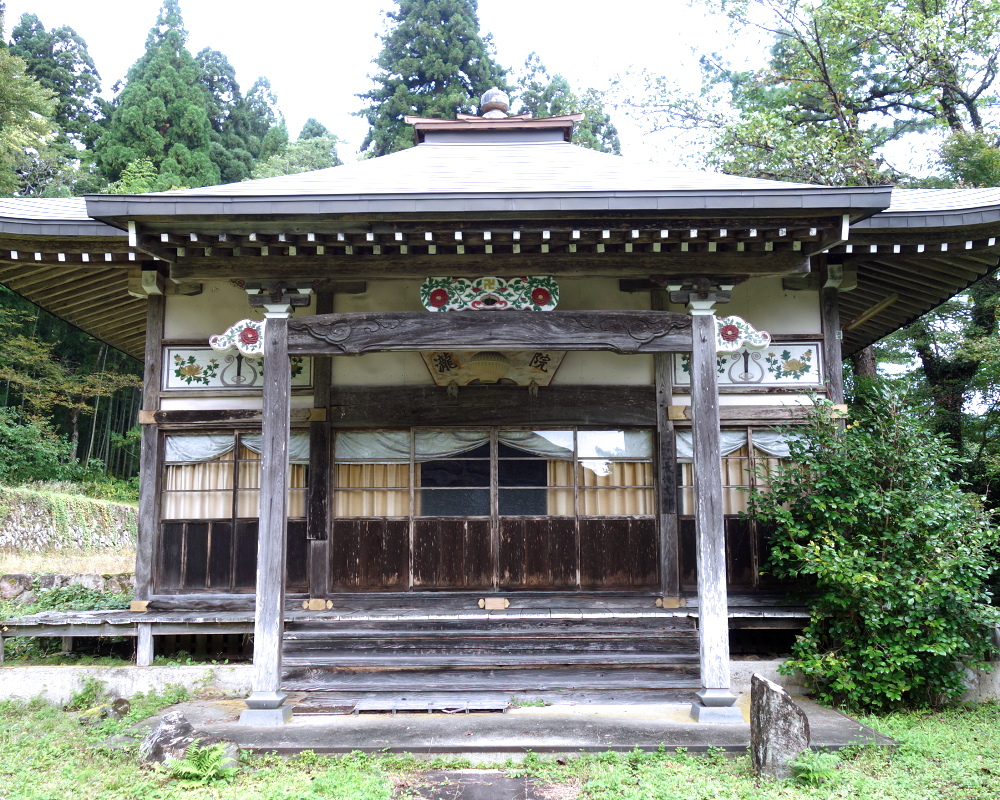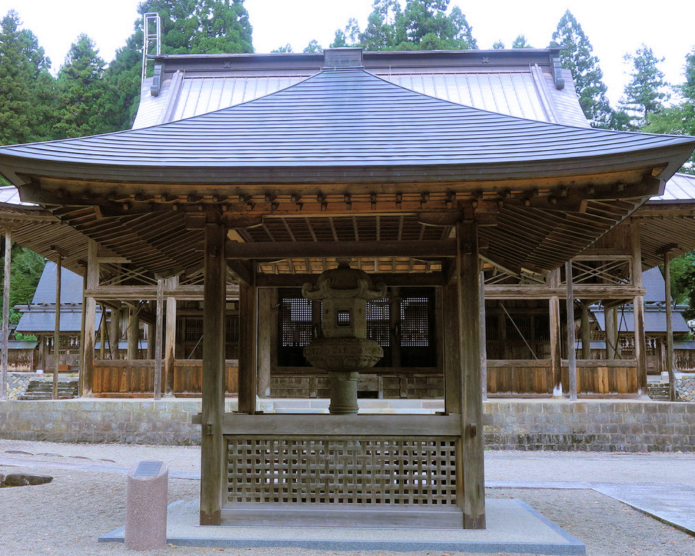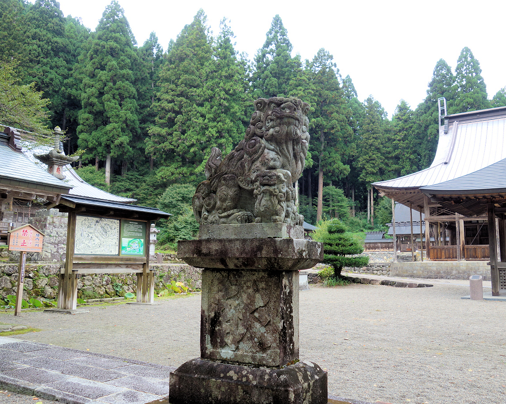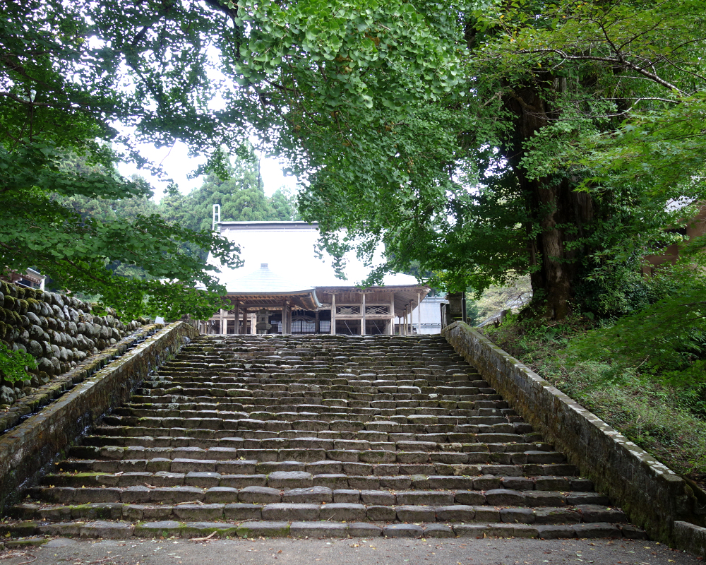 白山中宮長瀧寺の大講堂は1910年に再建された木造建築で、白山三山の本地仏である釈迦・阿弥陀・薬師の三尊像を安置しています。