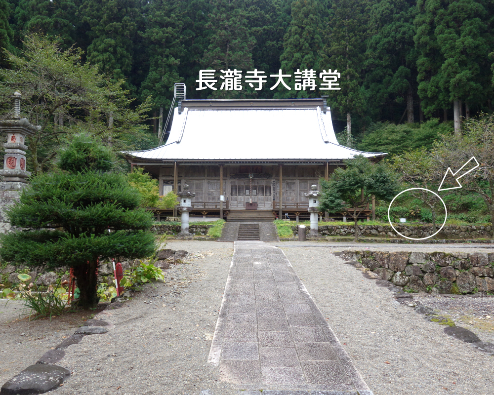 場所は、拝殿の正面から見て「左側」、隣接する長瀧寺大講堂の向かって右側の奥に位置します。
