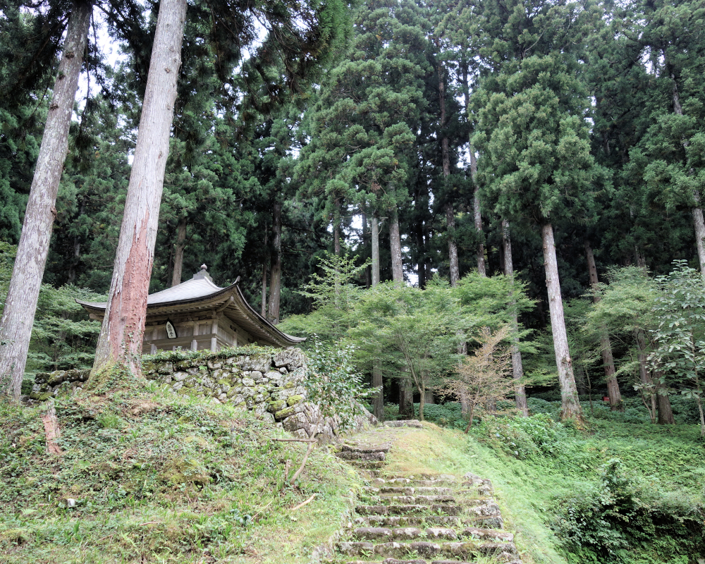 今は空地や石垣が残るのみですが、かつてここには多くの僧侶たちが暮らし、修行に励んでいた建物がひしめき合っていました。建物が消えた今も、苔むした石垣に触れると、当時の熱気や白山信仰の圧倒的な規模が伝わってくるようです。